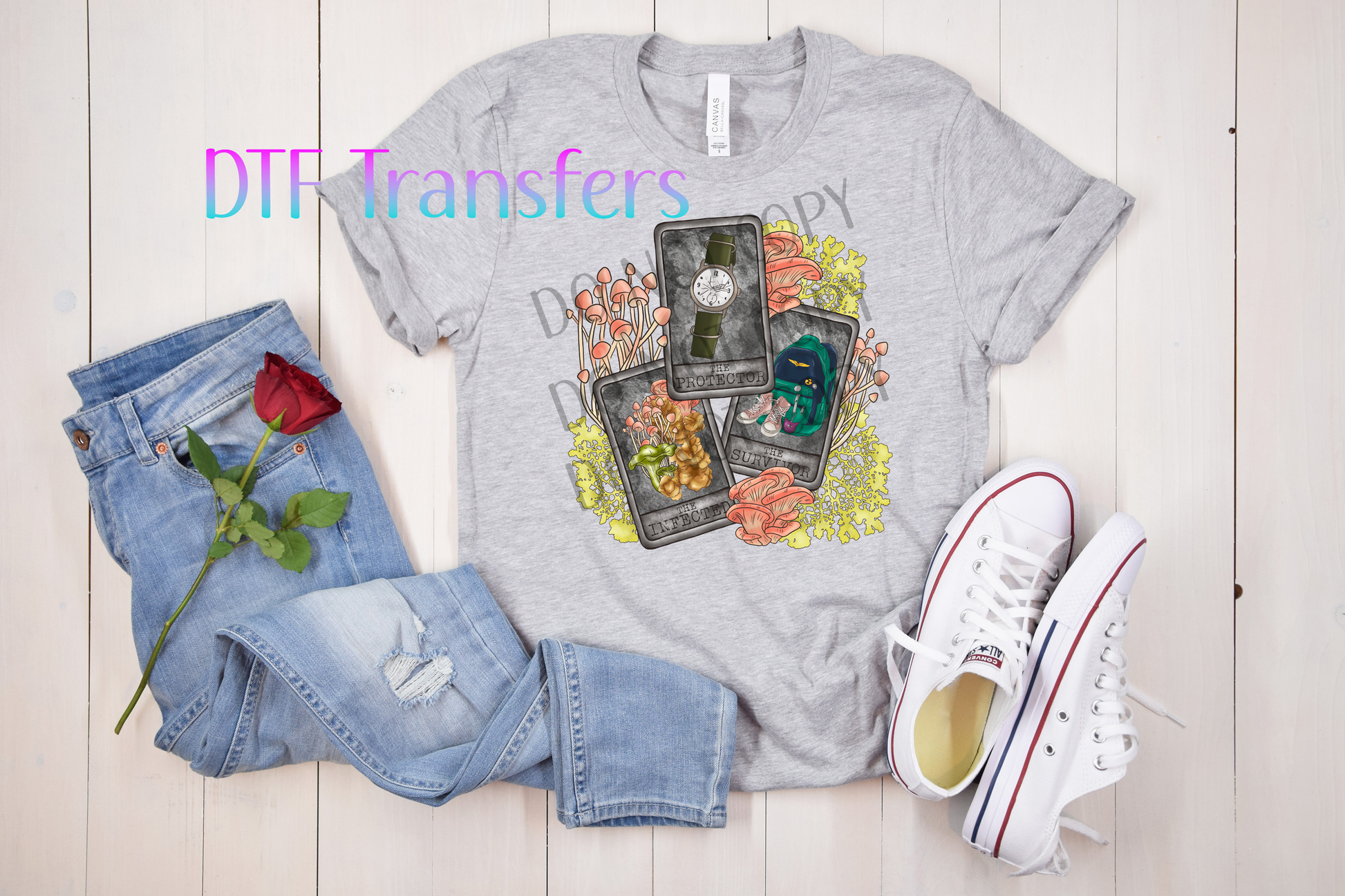 Channel post-apocalyptic vibes and mystical energy with this Tarot Card-Inspired DTF Transfer featuring three powerful cards—The Protector, The Survivor, and The Infected—set against a backdrop of vibrant mushrooms and fungi. This unique design blends nature, survival, and mystery, perfect for fans of gaming, horror, or the supernatural.