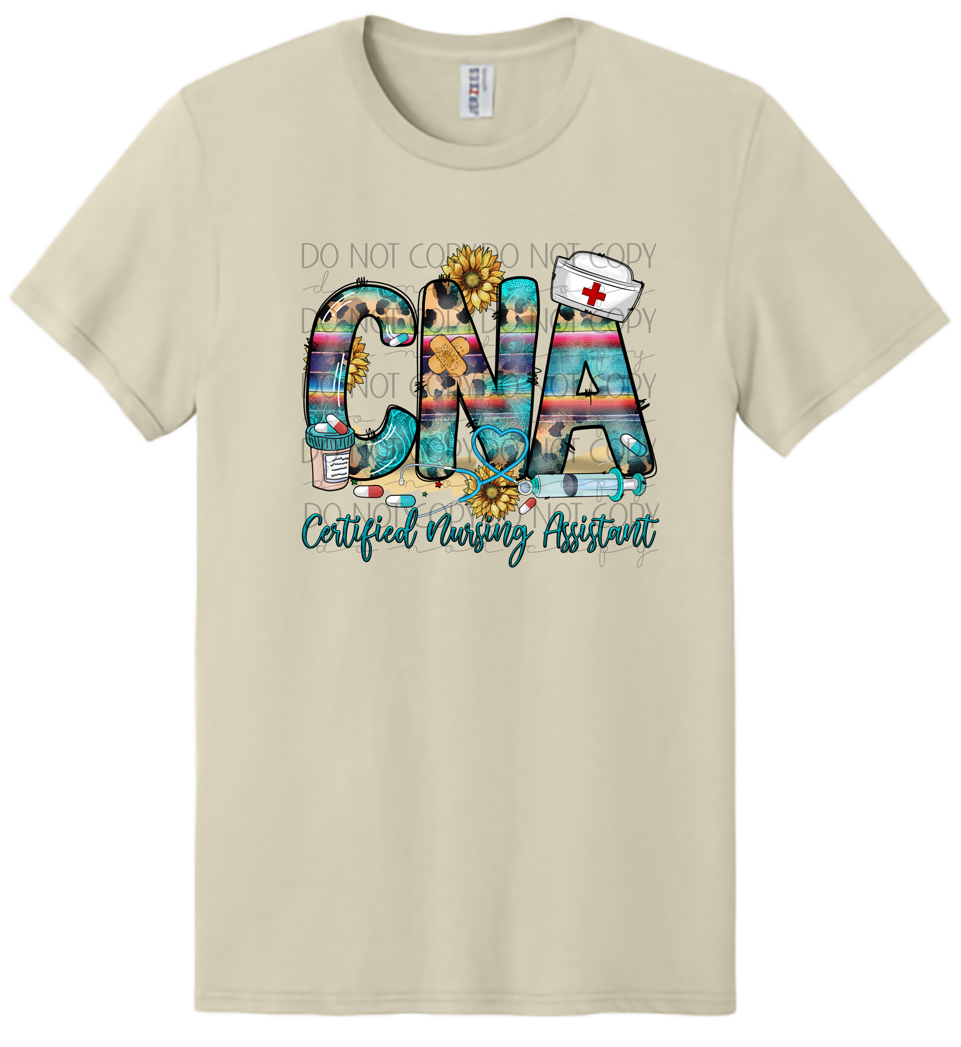Celebrate the hard work and dedication of Certified Nursing Assistants with this stylish CNA T-Shirt! Featuring bold, colorful lettering with sunflower, stethoscope, nurse cap, and medical graphics, this tee is perfect for CNAs who bring care and compassion every day.