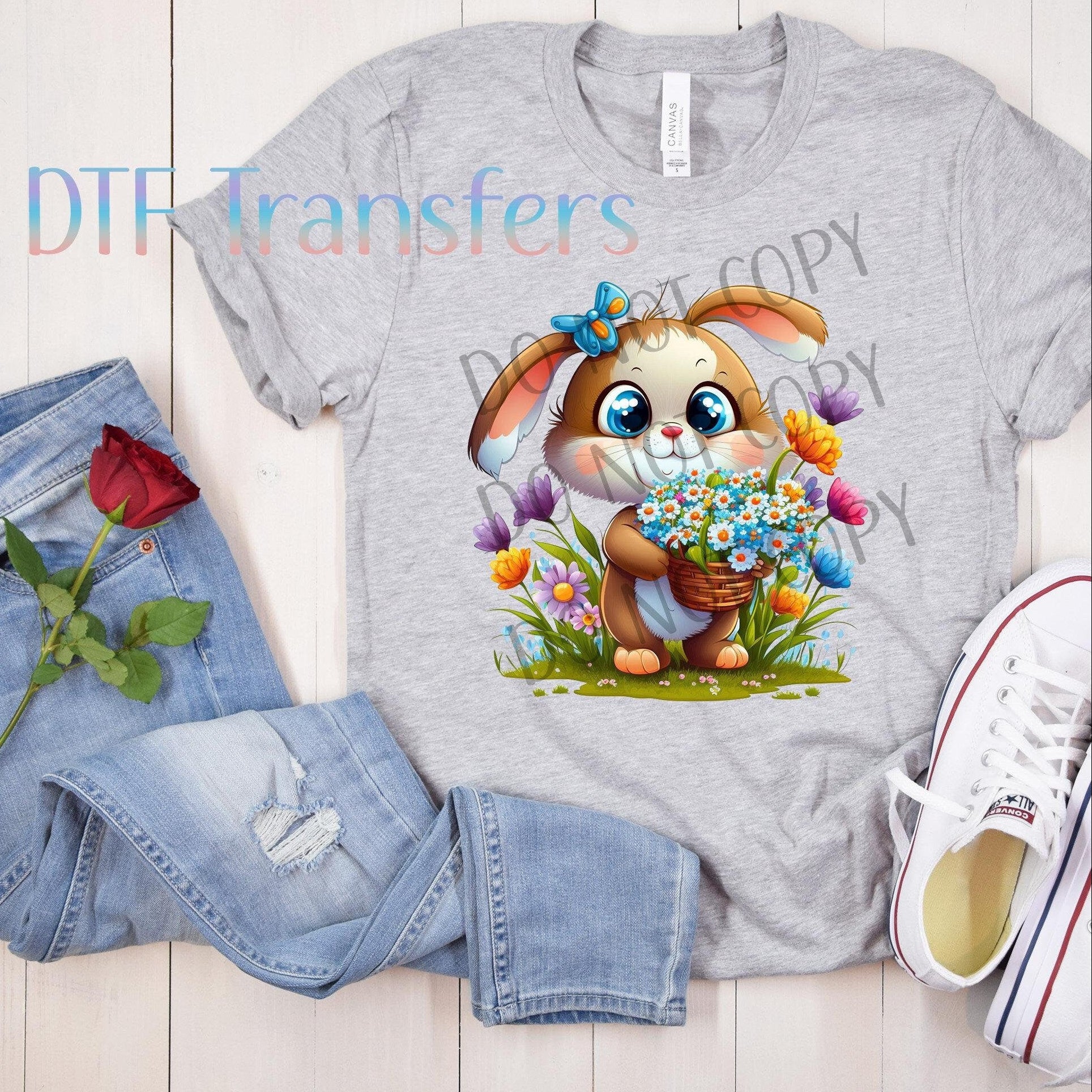 Floral Bunny Transfer, Ready To Press, Easter Bunny DTF Transfer, Image Transfer, Heat Press Transfer, Full Color Transfer, Direct to Film