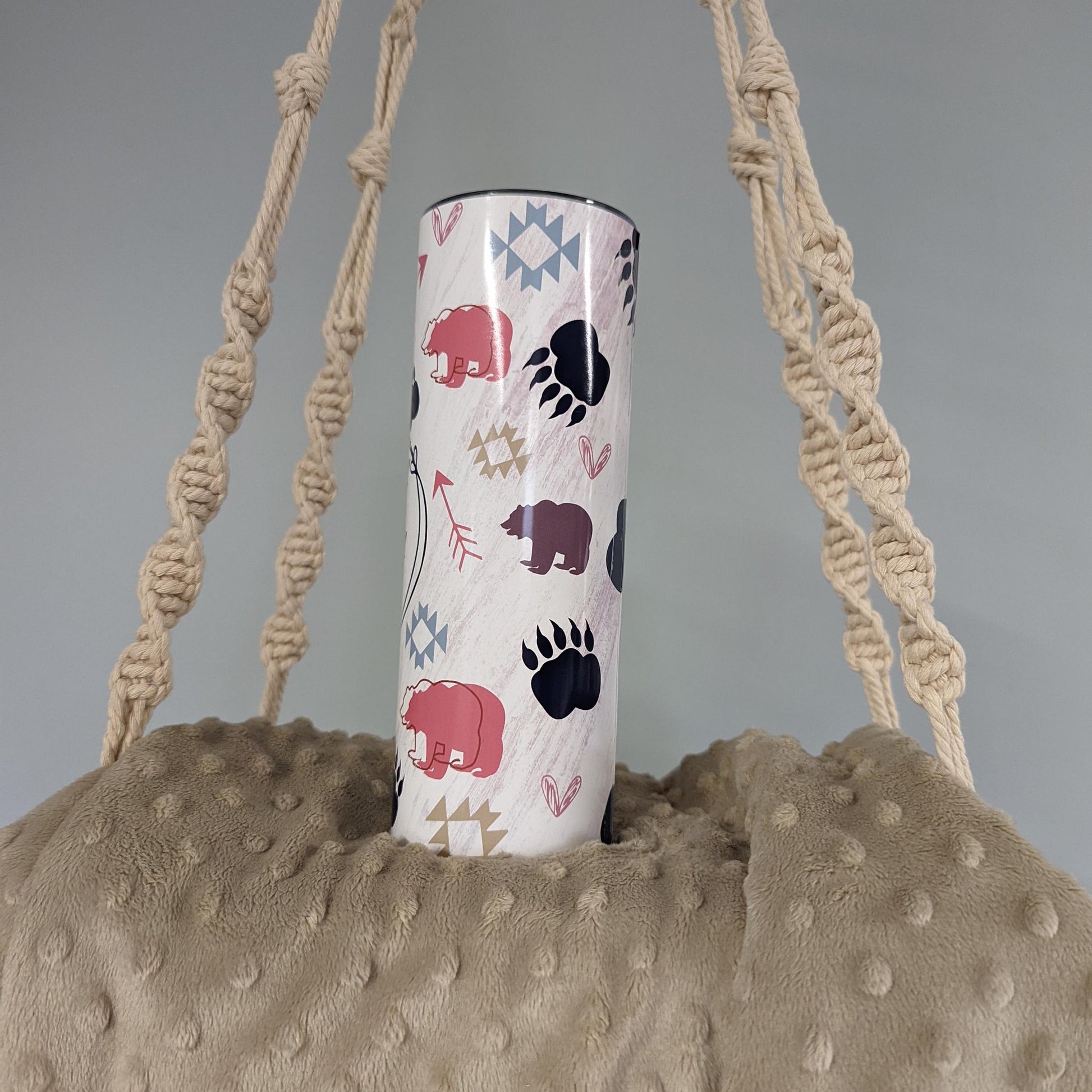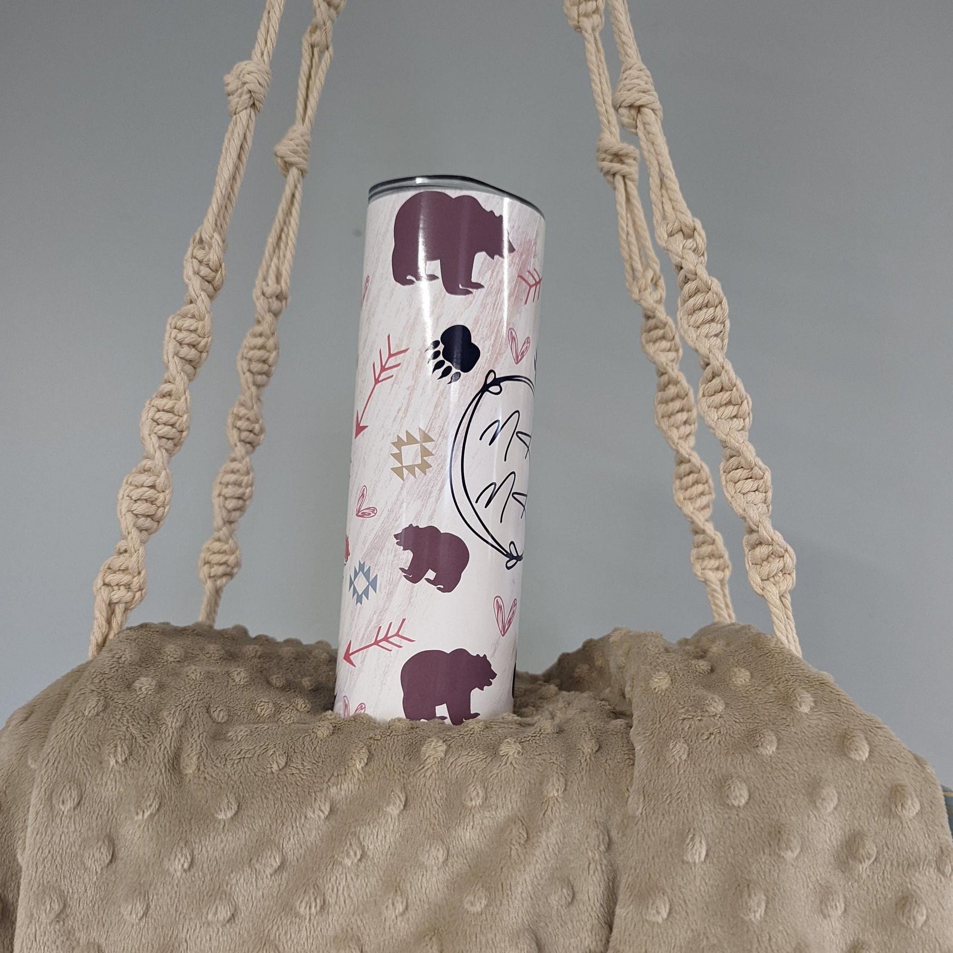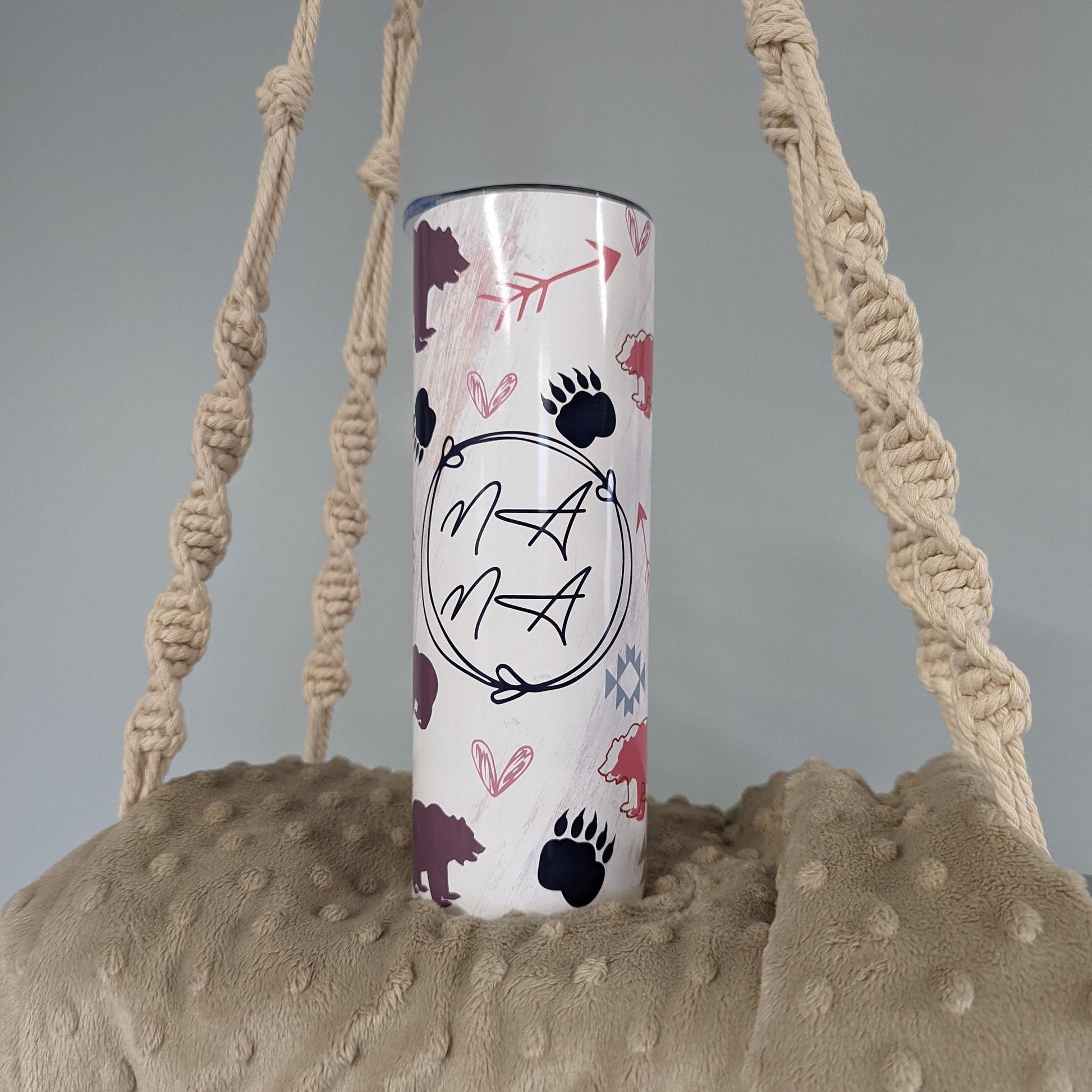 Celebrate strong, loving mamas with this rustic Mama Bear 20oz tumbler! Featuring a soft boho design with bear silhouettes, paw prints, arrows, and hand-drawn hearts, this stylish tumbler is perfect for moms on the go. The modern “MAMA” script in a circular frame adds a chic, personalized touch that’s both fierce and feminine.
