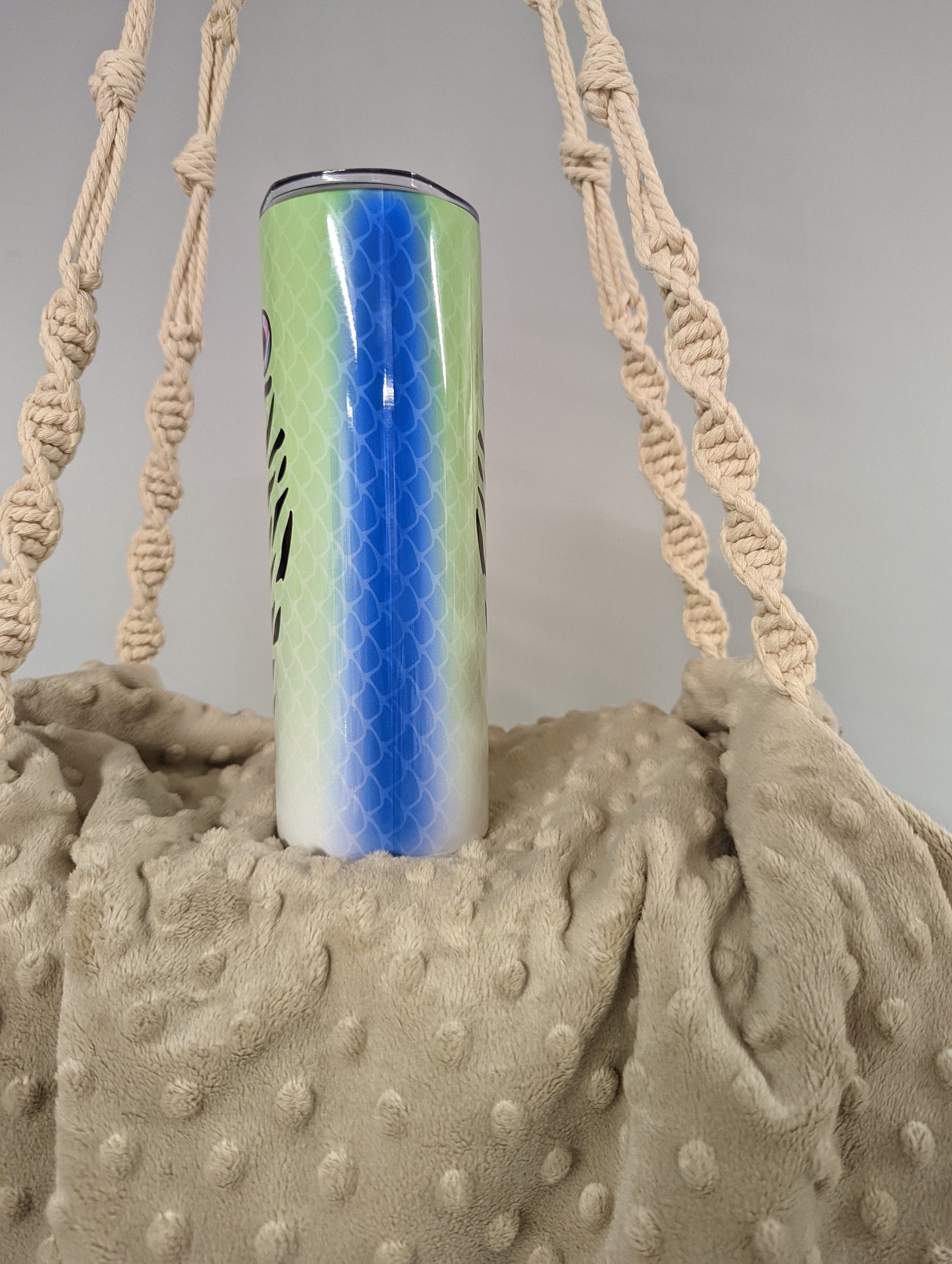 Fish Scale Tumbler – Lure-Inspired Green Gradient with Eye and Scale Detail