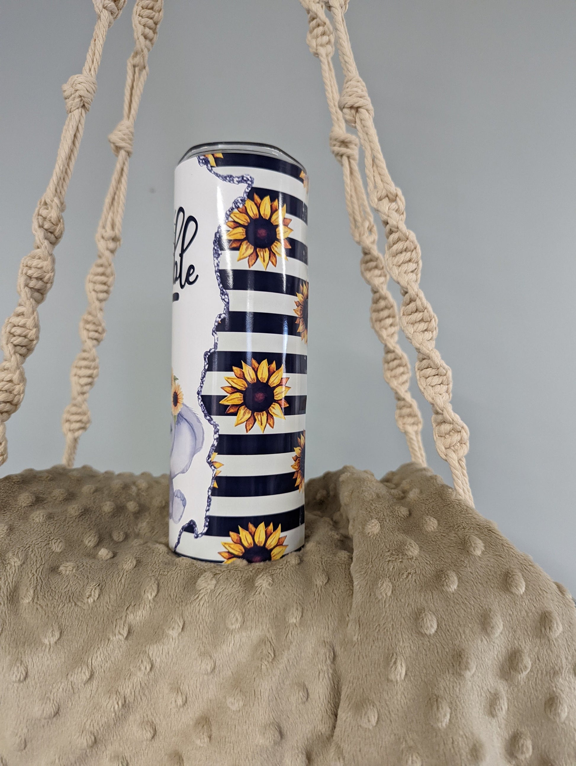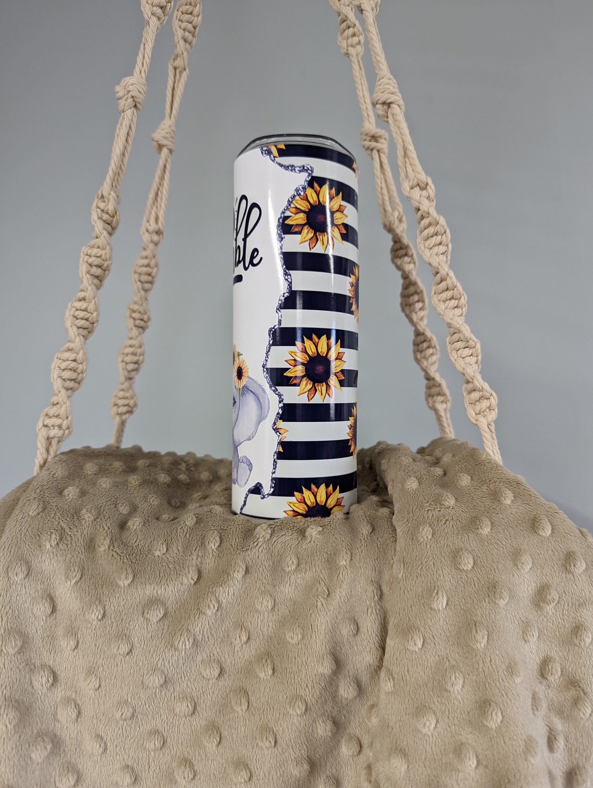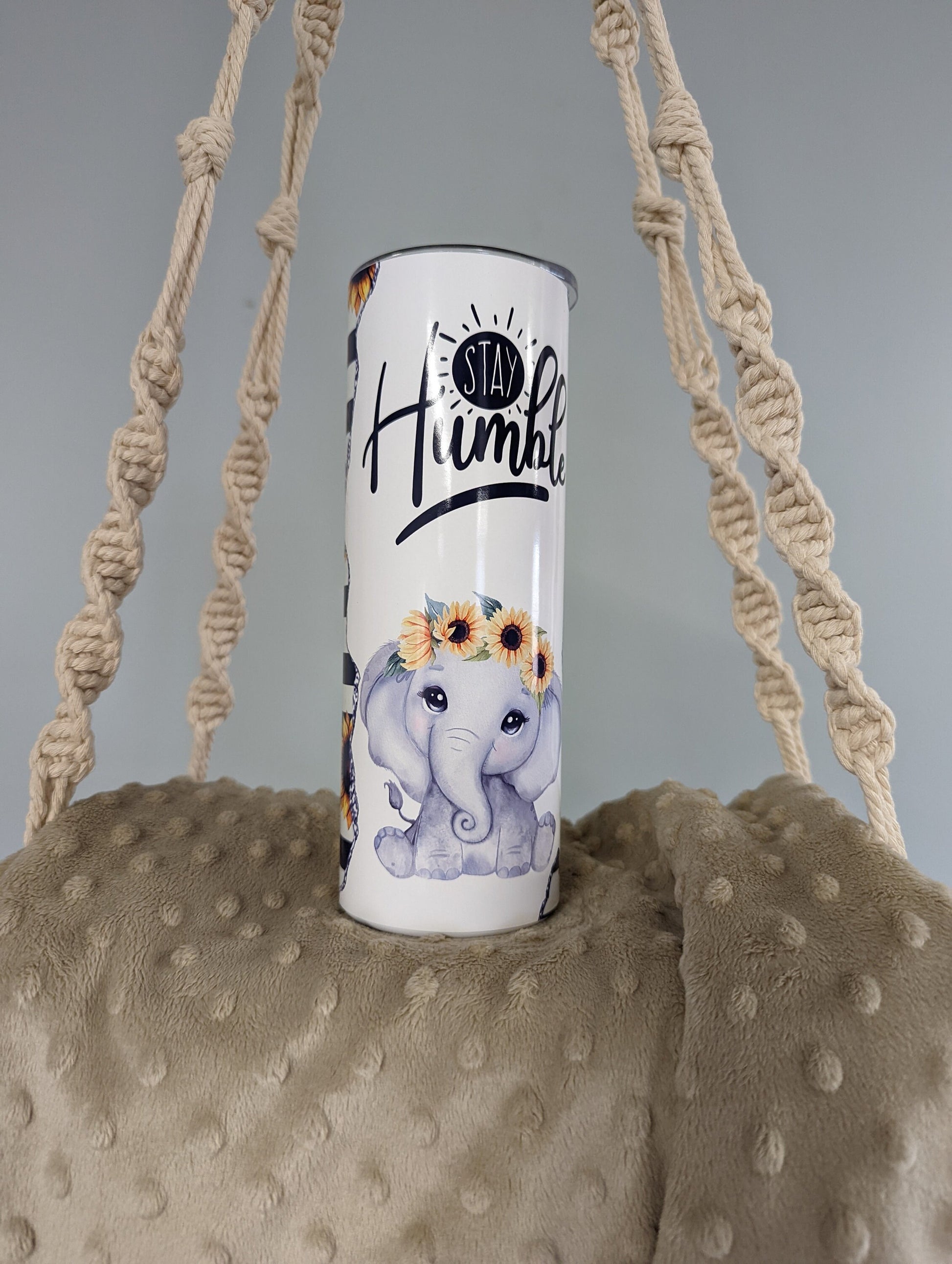Stay inspired with every sip! This beautiful 20oz skinny tumbler features a sweet baby elephant wearing a sunflower crown, paired with the uplifting reminder to “Stay Humble.” Perfect for everyday use, gifting, or adding a little sunshine to your drinkware collection.
