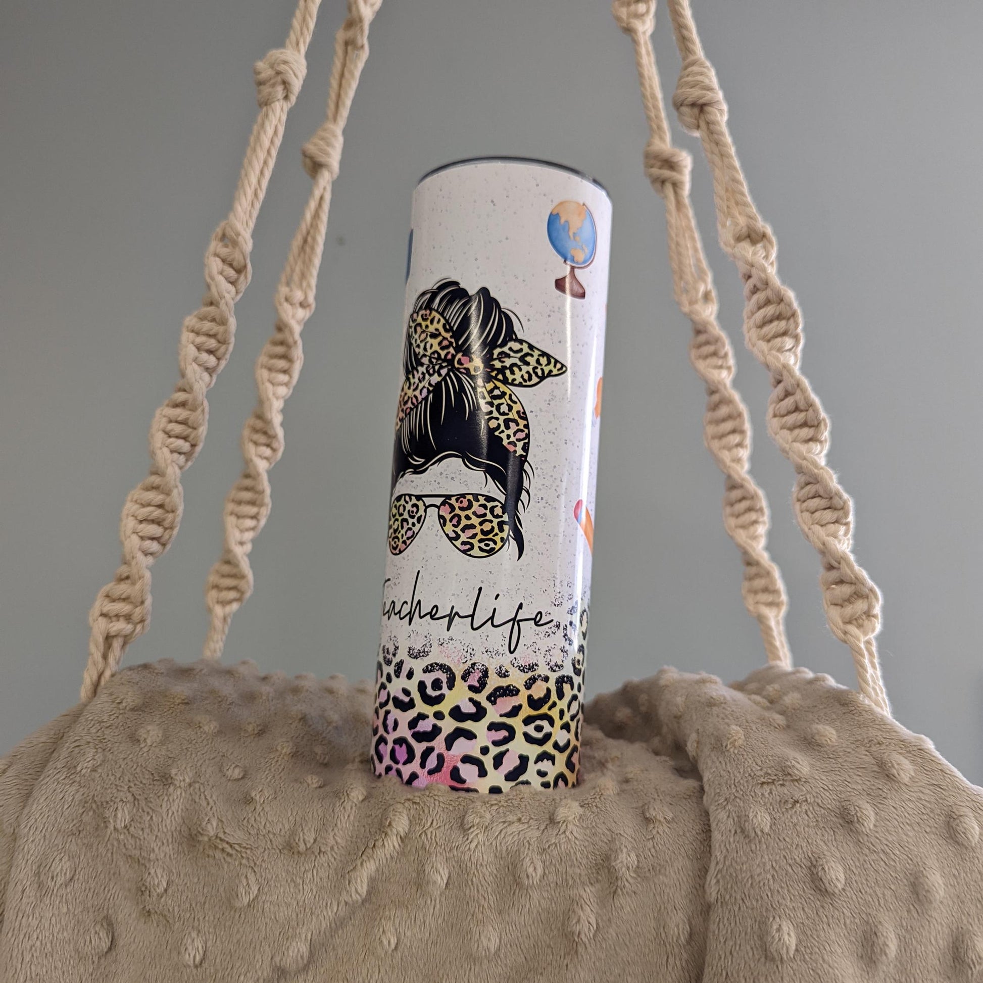 #TeacherLife Leopard Print 20oz Skinny Tumbler